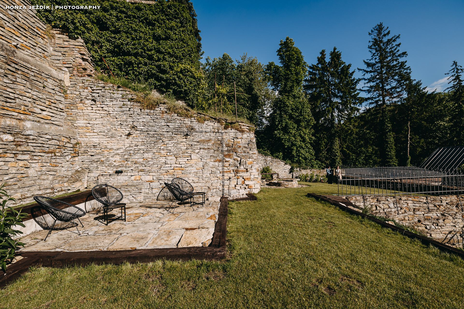 Dům obklopuje terasovitá zahrada, kterou jsme navrhli jako místo pro odpočinek i malé radosti. Různá zákoutí se sezením vás zvou k tomu, abyste si s kávou sedli pod strom, otevřeli knihu nebo si jen užili ticho. Večer se pak zahrada promění v útulné místo pro posezení u ohně, ideální pro společné chvíle s rodinou či přáteli.